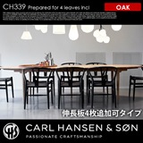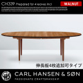 CARL HANSEN & SON(カールハンセン&サン)のハンスJ.ウェグナー(HANS J WEGNER)が1962年にデザインした【CH339 ダイニングテーブル 240×115 Walnut(ウォールナット)】です。基本サイズは240×115cmの楕円形スタイルのダイニングテーブルとなっており、115×60cmの伸長式板を最大4枚迄追加することができるプロダクトです。仕上げは、ラッカー・オイルの2種類からお選びいただけます。精巧な木工技術と優美フォルムの融合が見事なデザインテーブルです。(※伸長板をご追加の場合はシリーズリンクから別ページにてご購入下さい。)