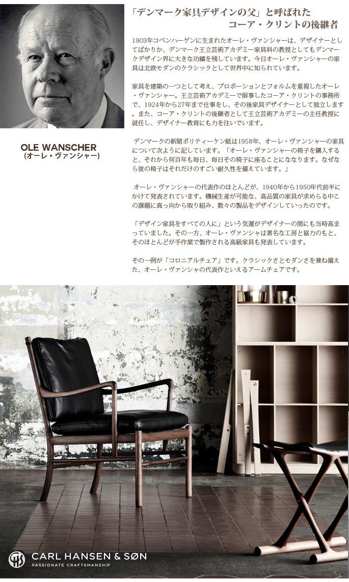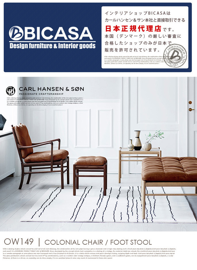 カールハンセン&サン(CARL HANSEN & SON)のコロニアル チェア COLONIAL CHAIR OW149はシンプルながらも洗練された美しさを感じさせるコロニアルシリーズのリビングチェアです。1949年にオーレ・ヴァンシャ(OLE WANSCHER)によりデザインされたチェアです。※こちらは国内在庫商品のページになります。ウォルナット・オイル仕上げ・座面はTHOR301・THOR307・SIF91の3種類からお選び頂けます。(納期:2~3週間)