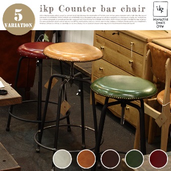 ikp カウンターバーチェアはビンテージ感漂う懐かしい雰囲気を感じさせるデザインが魅力の椅子です。Ikpのシリーズ商品と組み合わせることでカフェ風の雰囲気を演出できます。また座面が鋲打ちになっているのでアンティーク風のレトロな雰囲気を醸し出します。カラーはキャメル・グリーン・ダークブラウン・レッド・ホワイトの5色からお選びいただけます。