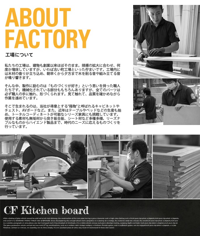 キッチン空間をスタリッシュにサイドパネルをなくした仕様がシンプルにすっきりと感じさせてくれるカップボード(キッチンボード、食器棚)シリーズ!CF80オープンボード(CF-80 Open Board)です。ナチュラルな素材感と木のヌクモリとあたたかさを感じさせてくれるオイル仕上げで、まるでおしゃれなカフェにあるキャビネットのようなディスプレイが愉しめる収納力に長けたデザインキャビネットです。120cmと80cmのオープンボード、収納力を重視した80cmのオープンシェルフタイプ、ディスプレイタイプのシェルフボードとワゴンが付いたカウンタータイプをシリーズで展開しています。