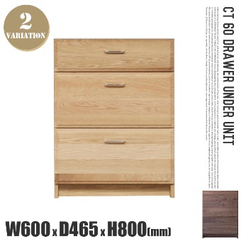 ホワイトオークとウォールナットの無垢材を贅沢に使い、天然木ならではのヌクモリと味わい深さを感じさせてくれるCT60引出 アンダーユニット(下台)です。ナチュラルな雰囲気とシンプルでどんな空間にも合わせやすいデザインになっており、サイレントモーションレールを使用した引出を導入しているハイスペックなプロダクトとなっています。ナチュラルとウォールナットからお選びいただけます。※お求めされるユニットに合わせたミドルユニット(上台)もしくは天板を組み合わせてご利用下さい。