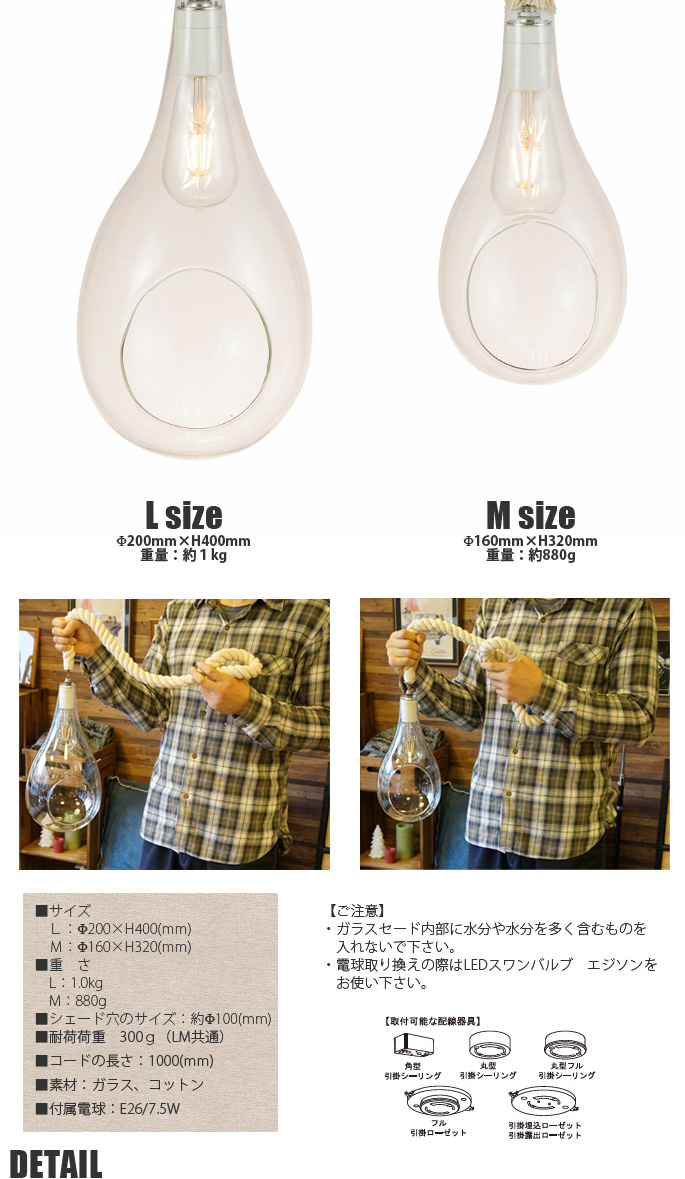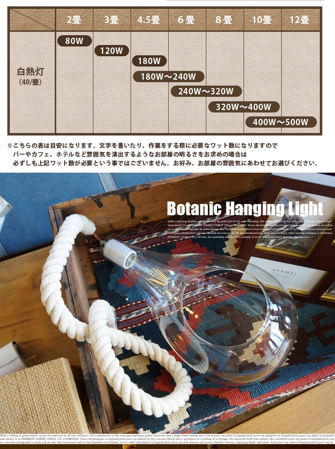 Botanic Hanging Light(ボタニックハンギングライト)は、ハンギングテラリウムをモチーフにしたペンダントライトです。電球はLEDエジソン球を使用。長寿命、省電力で熱をもちにくいので、エアプランツなどの植物を入れてアクセサリー照明としてお使いいただけます。コードはロープ状のコットン製で、植物との相性が良いナチュラルオーガニックな仕様。多灯付けでねじらせたり、高さでリズムをつけたりアレンジをお楽しみいただけます。住宅のみでなく、カフェやレストランにもおすすめです。
