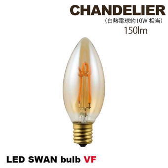 LED SWAN BULB VF CHANDELER(LED スワンバルブ VF シャンデリア) は、LEDで美しいフィラメントを再現したヴィンテージLED電球です。白熱電球独特の温かみのある美しいフィラメントの光を、特殊な技術を用いて省エネルギーのLEDで再現しています。雰囲気のある光でヴィンテージ、レトロ、カフェ風などおしゃれな空間を演出します。白熱電球の約40W相当の明るさでより長寿命、省エネルギーの設計となっております。