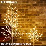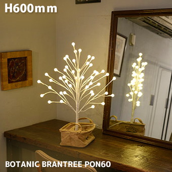 BOTANIC BRANTREE PON60(ボタニック ブランツリーPON60)は、枝先からLEDの優しい光を発するツリー型のライトです。点灯パターンは9種類あり、調光機能付きで様々な光の演出が可能です。リモコンが付属しているため簡単に操作できます。コンパクトサイズでシェルフやダイニングなどの卓上スペースを有効活用でき、気軽にイルミネーションを楽しめます。枝先の丸いライトはソフトな印象の光でかわいらしい雰囲気やナチュラルな空間にマッチします。