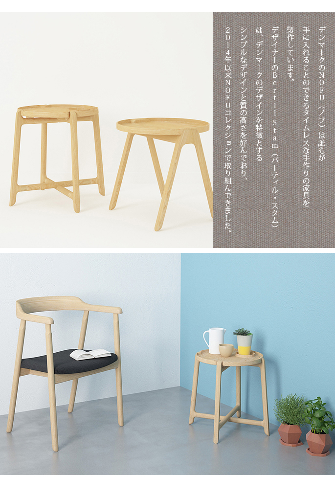 NOFU(ノフ)のNOFU 740 TRAY TABLE(ノフ 740 トレイテーブル)NOFU-740はサイズW480xD480xH450mmのトレイテーブルです。素敵な手作りトレイテーブルは、ソファの隣のサイドテーブルとして。花瓶やコーヒーカップを置く賢い場所が設置されていて、使い方の幅が広がります。NOFU740トレイテーブルはアッシュでできており、伝統的なデンマークのデザインからインスパイアされています。ホルダーは有無がお選び頂けます。