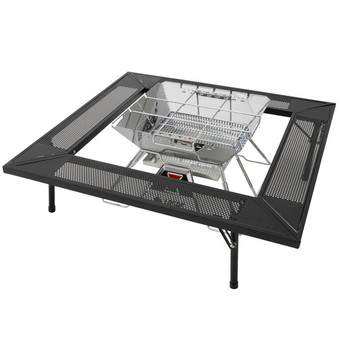 LOGOS(ロゴス)のアイアン囲炉裏テーブルはサイズ(約)92.5×92.5×27.5cm、開口部:(約)62×62cmの囲炉裏スタイルで、たき火やグリルを囲むテーブルです。中央にたき火台やグリルを設置することで、チェアに座りながらたき火やBBQを楽しめます。