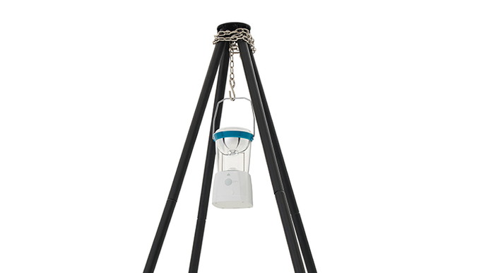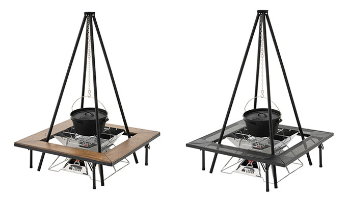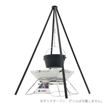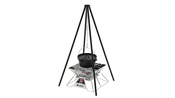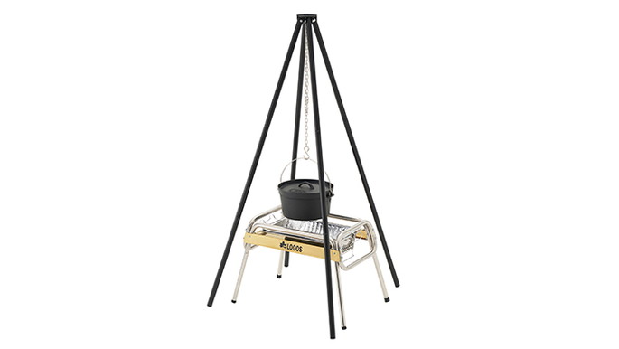 LOGOS(ロゴス)のアイアンクワトロポッドは、サイズ(約)70×70×133.5cmで、4本脚の吊り下げ料理スタンドです。マットブラックに塗装されたスチール製のフレームにより重厚感のある仕上がりになっています。