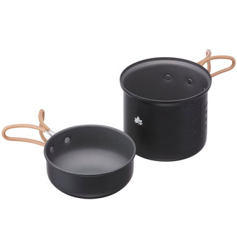 ソロキャンプに最適なコンパクトなクッカーがセットに。容量は900mlと345mlで、収納時にカップ麺を中に入れて持ち運ぶこともできます。耐久性UP&傷が付きにくいハードアルマイト加工を施し、直火調理が可能なのでフライパンや鍋のように使うことができるのもうれしい。カップラーメンやスープなど、ちょっとした食品の持ち運びにも便利です。