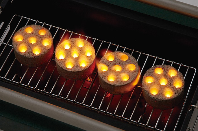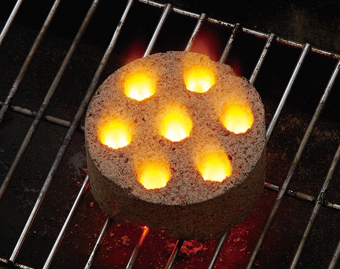 森林伐採しないヤシガラ成型炭。1個でステーキ4枚以上焼けるエコココロゴス・ミニラウンドストーブ6個入り。ライターをミニラウンドストーブの1点に集中して20秒前後熱するだけで簡単着火。シリーズ中、一番の火力を誇る「ラウンドストーブ2」のコンパクトサイズ版。燃焼効率の高い円型穴あき構造を継承しながら、コンパクトで小さな火床でもピッタリ収まるサイズです。