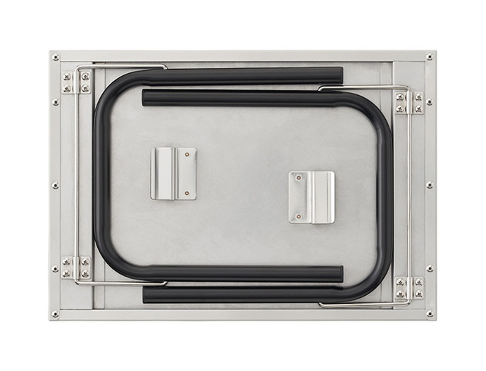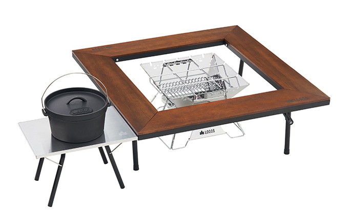 天板は熱に強いステンレス製で、フレームは丈夫なスチール素材です。LOGOS囲炉裏テーブルシリーズと 同じ高さなので並列して使えます。一体化された脚はワンタッチ開閉可能。脚が天板内に収まり、フラットに収納できます。付属のバッグに収納可能。手軽に持ち運べます。高さが揃うので見た目もスッキリ、焚き火時の調理台としても使いやすく、ダッチオープンの準備にも最適です。