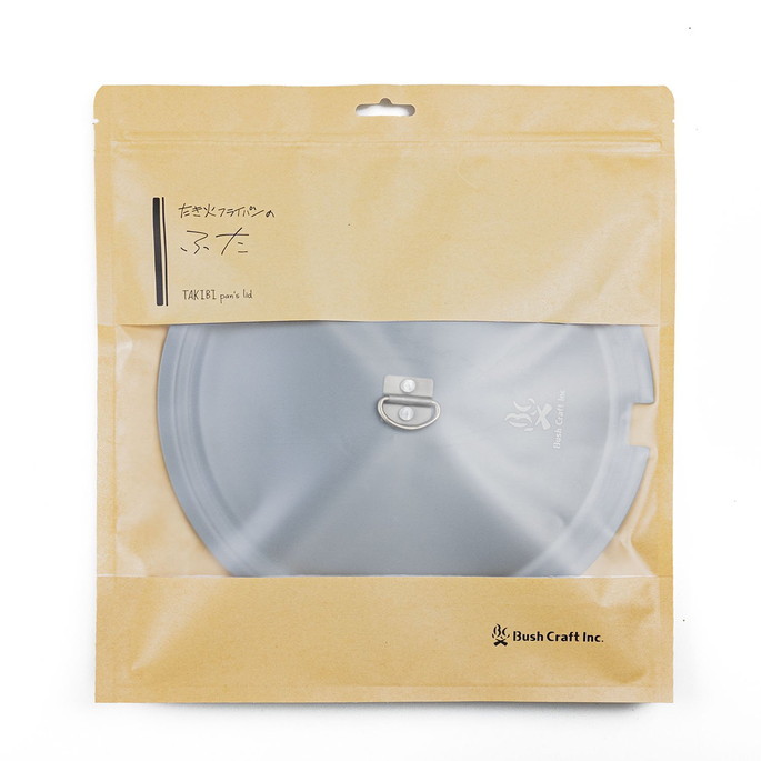 BushCraftInc.ブランドの『たき火フライパン』シリーズに適合する専用のフタです。堅牢で重厚感のある2mm厚のアルミ製となっております。フタを裏返してフライパンに重ねると収納しやすくなっております