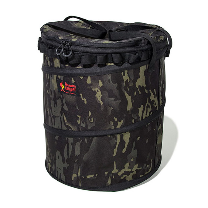 ポップアップ(折り畳み)式のトラッシュボックスです。ジップタブをラウンド型に、底部分は防水仕様にアップデート。内側にはゴミ袋(45L)をスマートに固定できるスナップボタン、外側には便利なネビュラチェーンが付いています。使わない際、コンパクトに収まるのがポップアップならではの嬉しい機能。ゴミ箱以外にも、工夫次第で使い方が広がるアイテムです。リニューアルタイプは、収納時にホールドしやすいバックルを3つ、転倒防止用のペグダウンループを追加。さらに、素材を質感の高いTP-700 ポリエステルに変更しました。