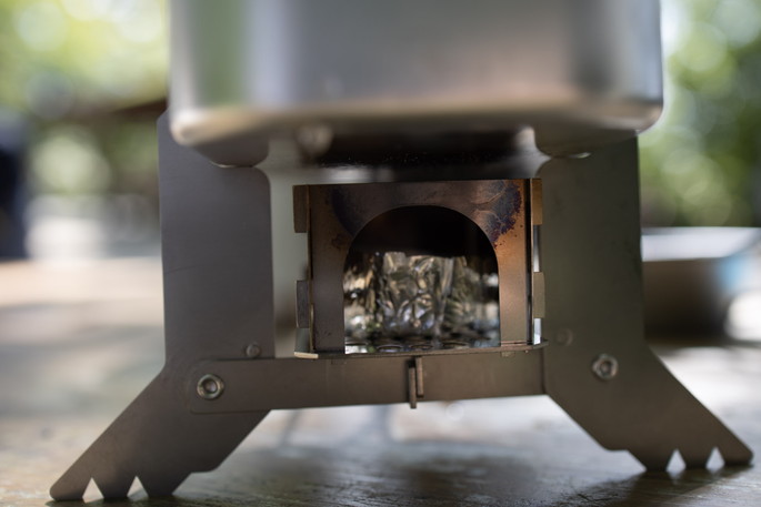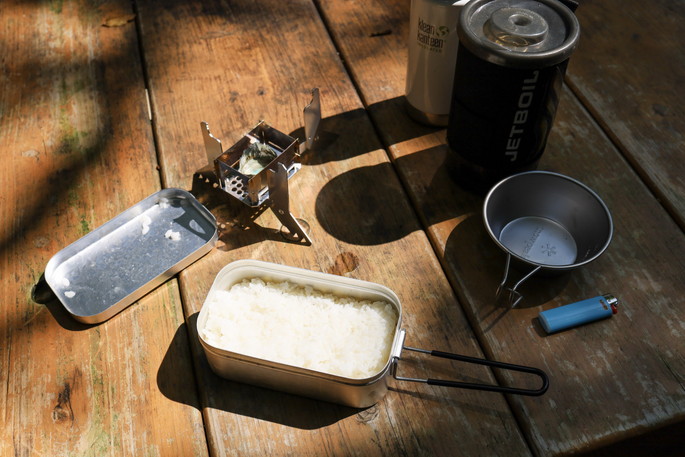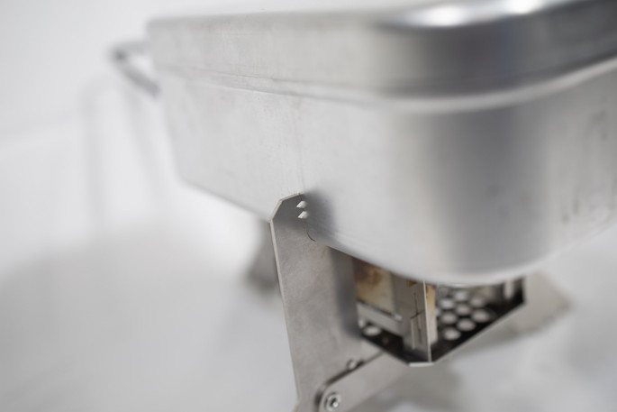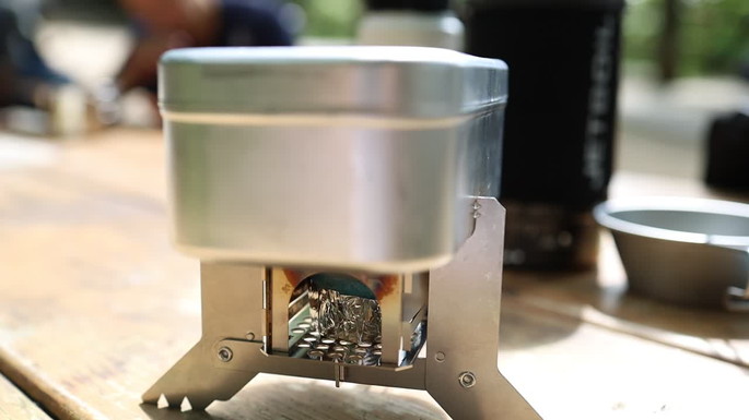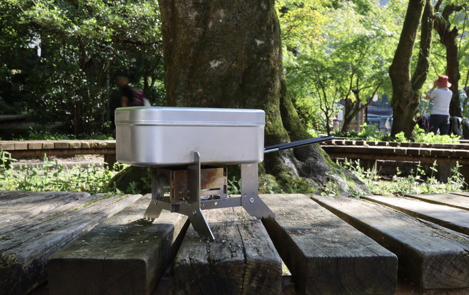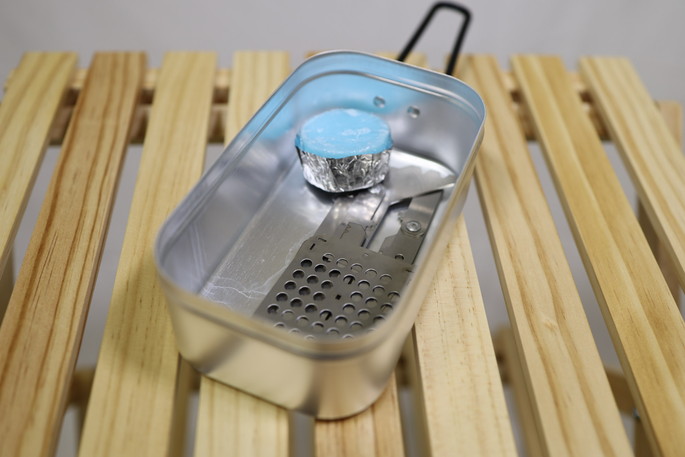 メスティン専用のM8ストーブです。コンパクトにしまえて、安心してほったらかし調理ができます。トランギア社を始めとしたメスティンのスモールサイズに対応した五徳で、市販の固形燃料を使用して調理します。三脚構造で3つの爪がメスティンに食い込みがっちり掴んで離さない設計なので、平らな地面でなくとも置く場所を選ばずどこでも使用できます。重さも約140gと超軽量で、パーツをばらせば薄い封筒に収まる超コンパクトサイズに。もちろんメスティンの中にすっぽり収まるので、食材や燃料を一緒にメスティンに入れて気軽にち運ぶことができます。