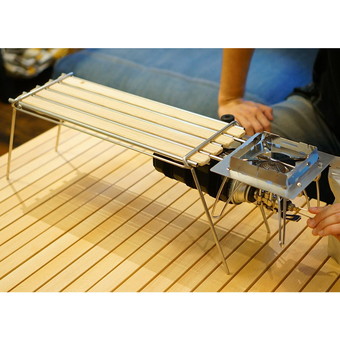 町工場コラボ企画で生まれた、キャンプギアです。 鞄職人、溶接職人、建築デザイナー、板金加工、照明製作などの下町工場の技術とアイデアの詰まった『純国産品』です。反射板、五徳プレート4枚、ジョイントステー2本、ガス管カバー兼、収納できるケース(パラフィン帆布/綿100%)がセットになっており、SOTO レギュレーターストーブ ST-310やアルコールストーブなどを取り付けることができる多機能アタッチメントです。別売りの多機能テーブル「A38grate」とジョイントすることが出来ます。
