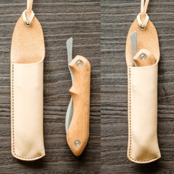ハンドルを削ってつくるナイフキットです。折りたたみできる料理用ペティナイフで、包丁のような使用感はキャンプやBBQの調理シーンでマルチに活躍します。ナイフでハンドル材を好きな形に削り、サンドペーパーで仕上げ、組ねじで固定してオリジナルナイフが完成します。「削るは楽しい」「暮らしにひと手間」をテーマにナイフの持ち手を自分に合う形に削って、オリジナルナイフを作れるところがポイントです。鋼と地金からなる伝統的な日本刃物でつくられたナイフは、職人がひとつひとつ手で研ぎあげた本格派です。