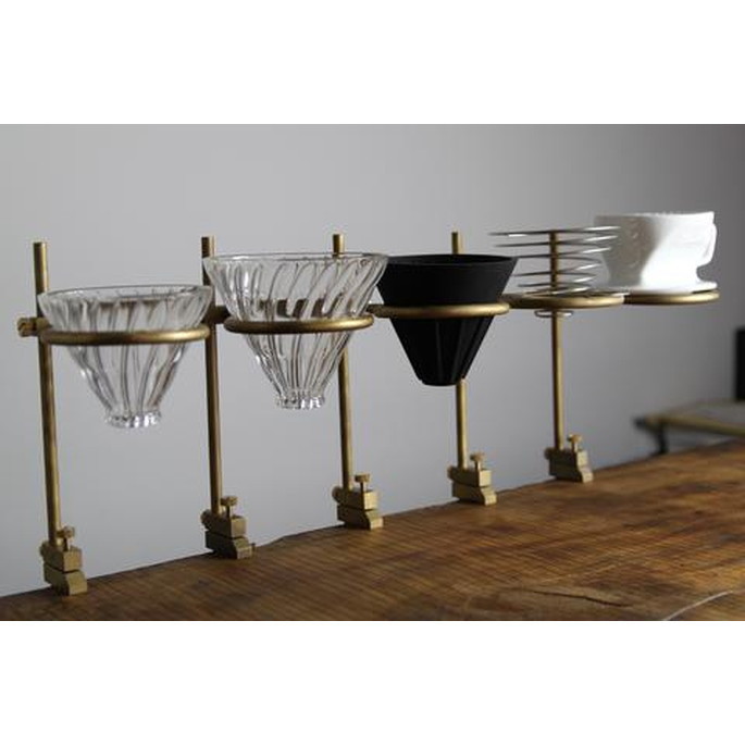 分解できて持ち運びやすい。テーブルに挟んで使う新感覚ドリッパースタンドです。専用台座に装着することで、 上質なインテリアプロダクトに変身します。 収納しなくても、キッチンにそのまま置いて 普段使いしていただくことができます。また、ドリッパーを装着する真鍮製のリング部は、 上下、前後に可動することができるので、 サーバーはもちろん背の高いピッチャーや マグカップ、グラスなど様々な大きさ、 高さに対応することができます