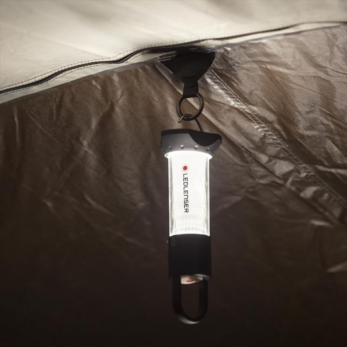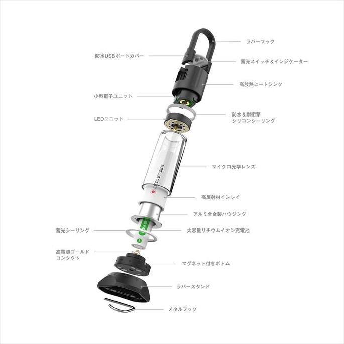 キャンプや登山、釣りで活躍するLEDランタンです。見た目はコンパクトでも、最大750lmの明るさを発揮します。導光板に似た構造を採用し、光の指向性を下方にコントロールします。直視しても眩しくなく、空間を柔らかく照らすので、キャンプサイトの雰囲気を損ないません。トップバンドや底部フックで、欲しい光の向きに合わせ上下に吊るせます。本体底部の強力マグネットで、磁気面への水平固定も可能。赤色点灯モードや、ブリーズモード(ゆらぎ点灯)を搭載し、おしゃれにキャンプを楽しみたい方にもおすすめです。万が一の際には、各種機器に給電できるパワーバンク機能も備えています。