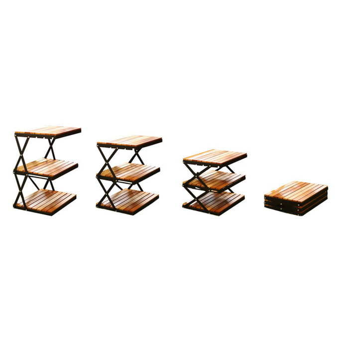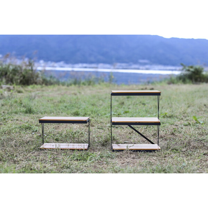 3段階の調整が可能なマルチユースラック。車中泊でも高さをつけてギアを収納できるので縦にスペースを確保することがきます。