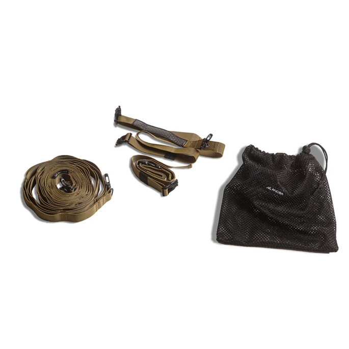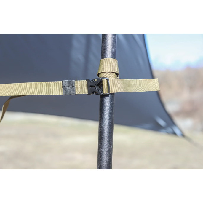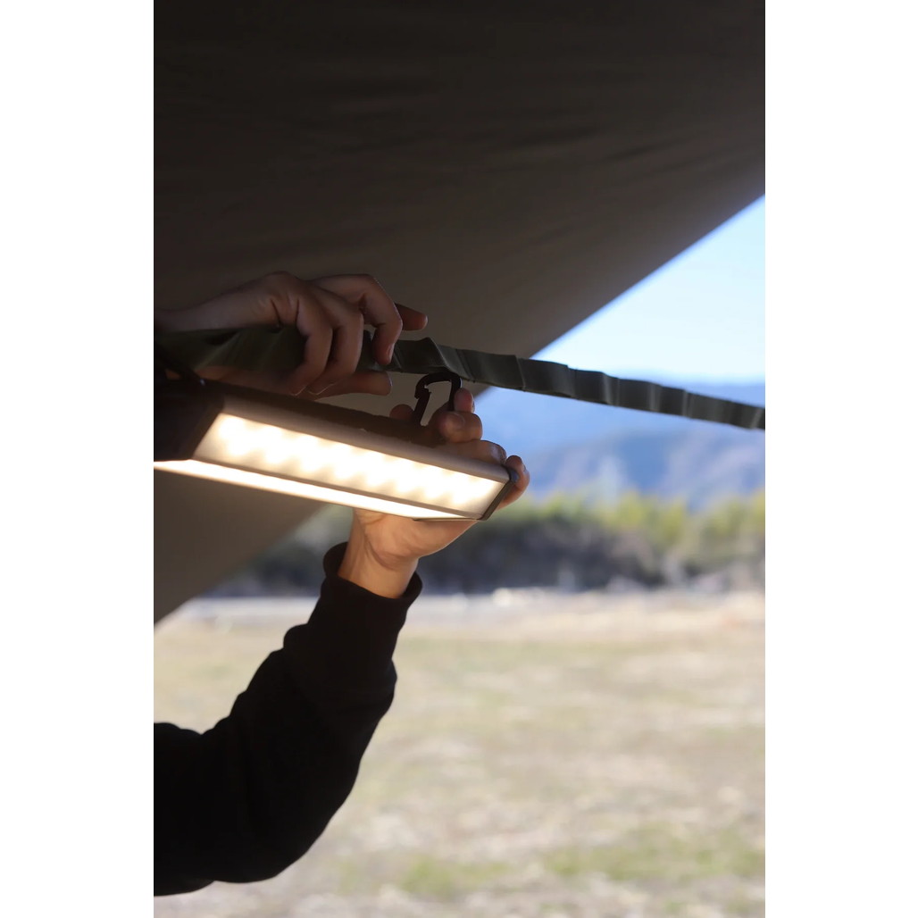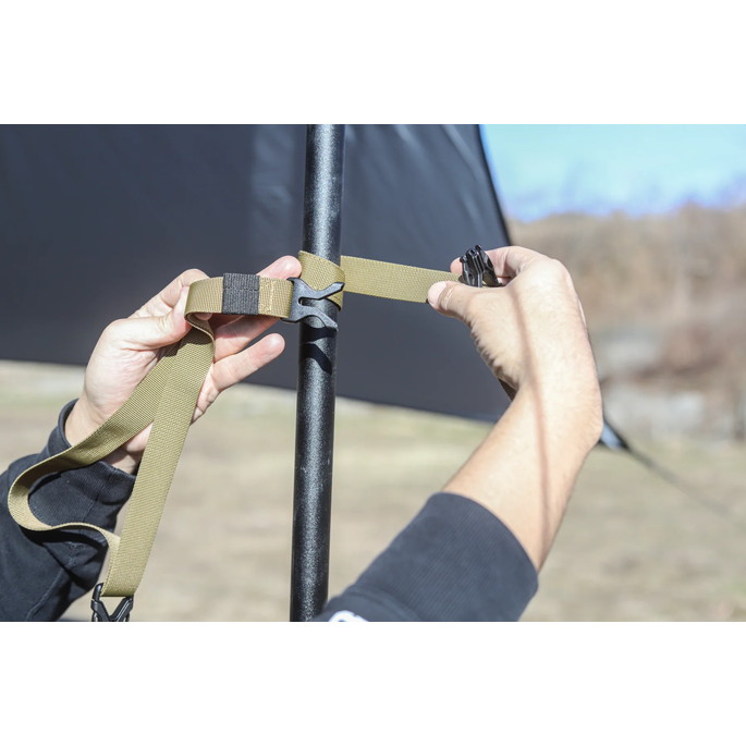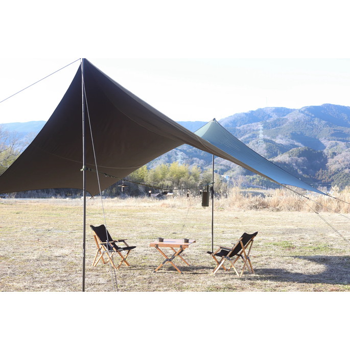 最長 530cm の長さで大型タープに使用可能なハンギングチェーンです。LEDランタンなどを自由に吊るすことができます。付属の収納袋にモバイルバッテリーなどの小物も入れて吊るすことができます。ポールに接触する部分には滑りにくい素材を採用することにより、物を吊るしても滑りにくい構造になっています。