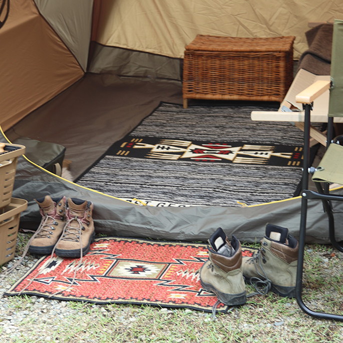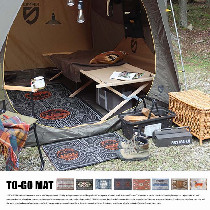 POST GENERAL(ポストジェネラル)からTO-GO MAT(トゥーゴーマット)が登場しました。UV加工糸を使用した機能性の高いマットになります。紫外線による退色劣化に強く汚れたら洗濯機で丸洗いできるアウトドアユースのマットです。テントサイトの靴の脱ぎ履き時のマットとして玄関マットとしてインテリアのアクセントにもなります。毛羽立ちを抑えた素材で季節問わずお使い頂けます。トライブ柄はインテリアのアクセントにもピッタリです。他にもバリエーションがあるのでお部屋のイメージに合わせてお選び頂けます。