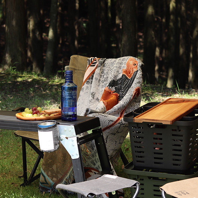 通年使える素材感のスローケット。ソファやベッドサイドでのインテリアケットとしてはもちろん、 芝生に直接敷いてピクニックラグとして使ったり、アウトドアシーンでのひざ掛けや、羽織るオールシーズンケットとしてもお使い頂けます。フロアマットとしてもインパクトがあり、敷くだけでお部屋の雰囲気をガラッと変えてくれますよ。キャンプシーンでは、敷物としてはもちろん肌寒い時の羽織にもおすすめ。専用のキャリーバッグ付きで持ち運びにも便利です。