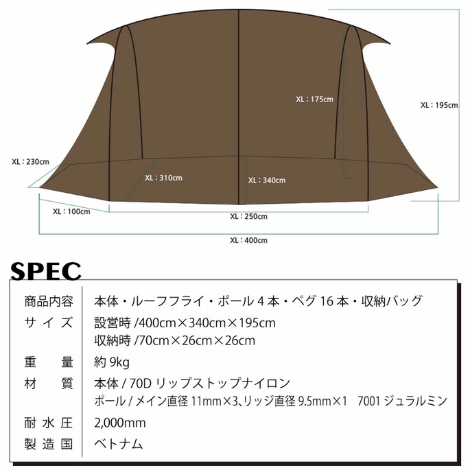 | 製品名 | ジュネスラバシェルターXLコヨーテ Jeunesse Larva Shelter XL Coyote |