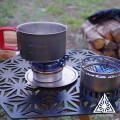 アイアン素材で熱には強いですが焼付塗装しているため直火禁止です。三脚ネジ1/4が付いているのでカメラ三脚にもセット可能です。