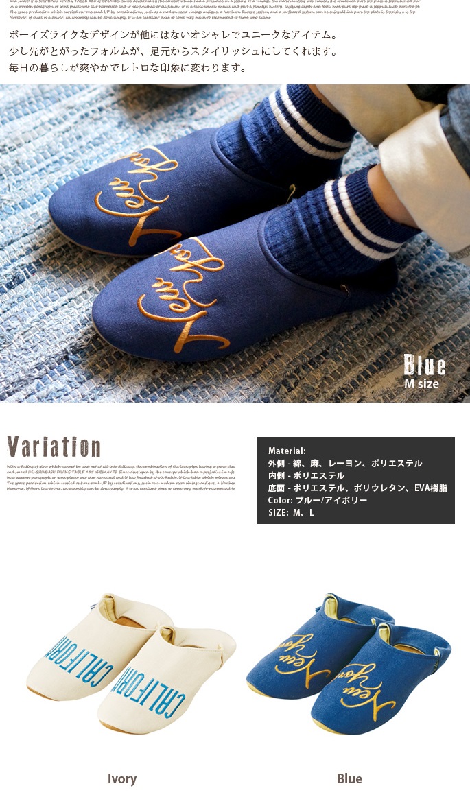 Williams Stadium room shoes・slipper(ウィリアムズ スタジアム)ルームシューズ・スリッパ・ブルー・2サイズ(M/L)