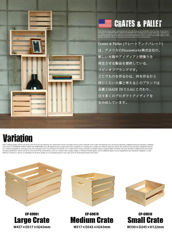メイドインUSAのコンテナボックス!収納BOX! Large Crate(ラージクレート) CP-69001 CRATES&PALLET(クレートアンドパレット) 収納ボックス・収納ケース