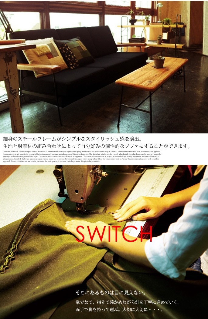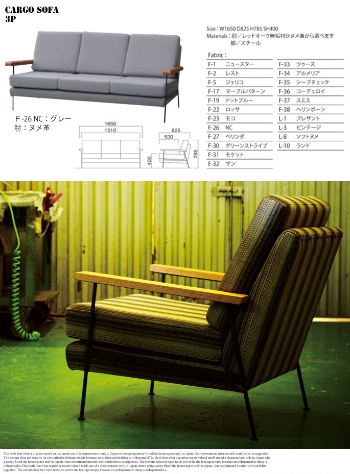 アーム部のレッドオーク無垢材(※ヌメ革もお選びいただけます。)、スチール、ファブリックが絶妙にマッチしたフォルムとシンプルであるものの独特の存在感を発揮するデザインが魅力のスイッチ(SWITCH)のカーゴソファ(Cargo sofa)シリーズです。レトロ感漂うスチールフレームと温かみと懐かしさを感じさせるウッドの組み合わせは他にはないおしゃれな雰囲気を演出します。また、程よい固さと柔らかさがあるシートクッションは身体をしっかりと支えてくれる座り心地でくつろぎ空間を演出すること間違いなしです。サイズは3人掛け、2人掛け、1人掛けとなっており、ファブリックは79種類からお選びいただけます。