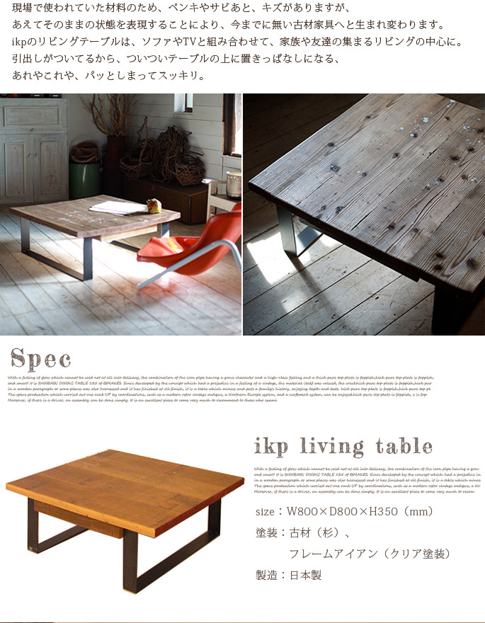 ikpリビングテーブル(LIVING TABLE) IKP(イカピー) 古材ローテーブル 送料無料