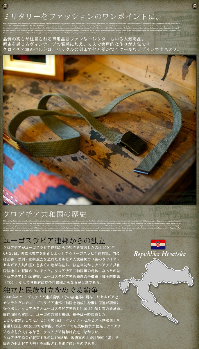 クロアチア軍キャンバスベルト(Croatia militaly canvas belt)USED(ユーズド)