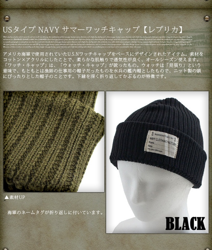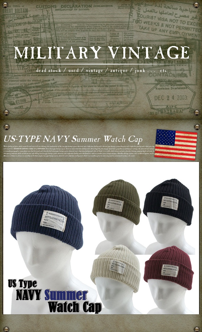 U.S Military NAVY SUMMER WATCH CAP(アメリカ海軍タイプサマーウォッチキャップ)全5色(オリーブ/ブラック/ナチュラル/ネイビー/エンジ)