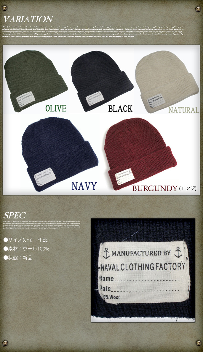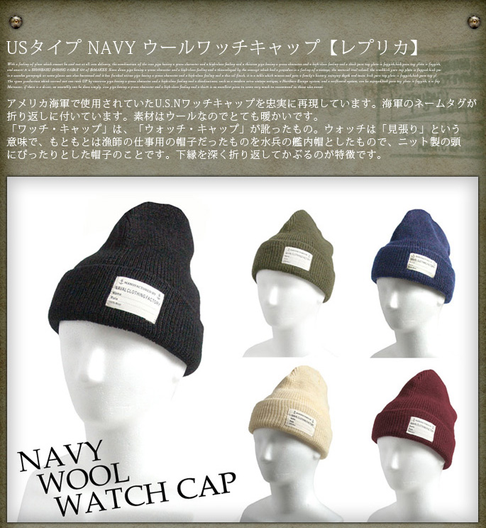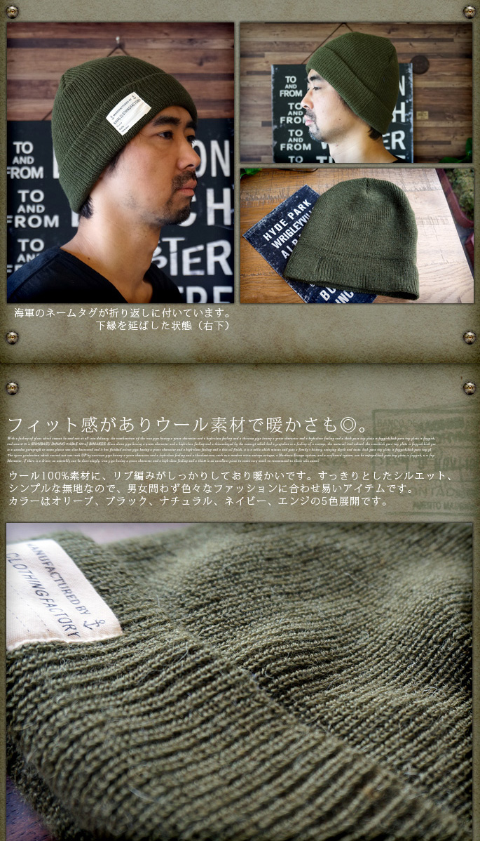 U.S Military NAVY WATCH CAP(アメリカ海軍タイプウォッチキャップ)全5色(オリーブ/ブラック/ナチュラル/ネイビー/エンジ)