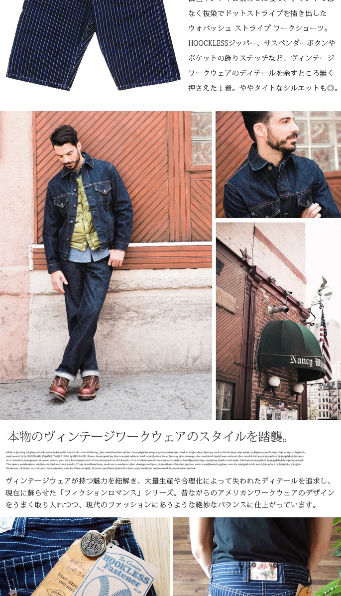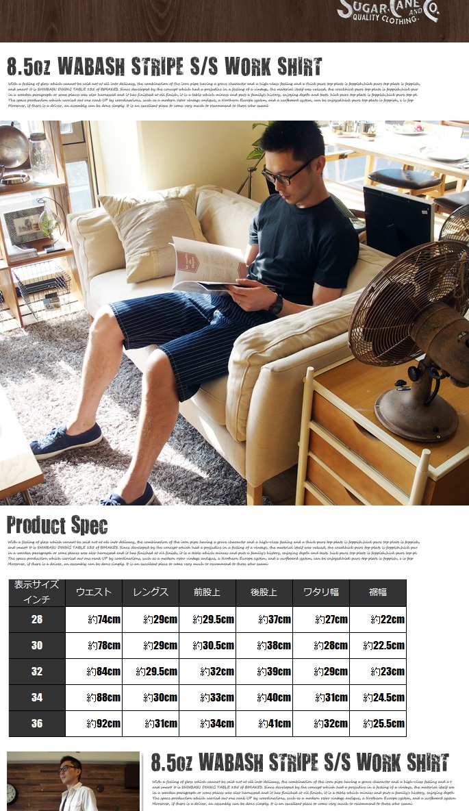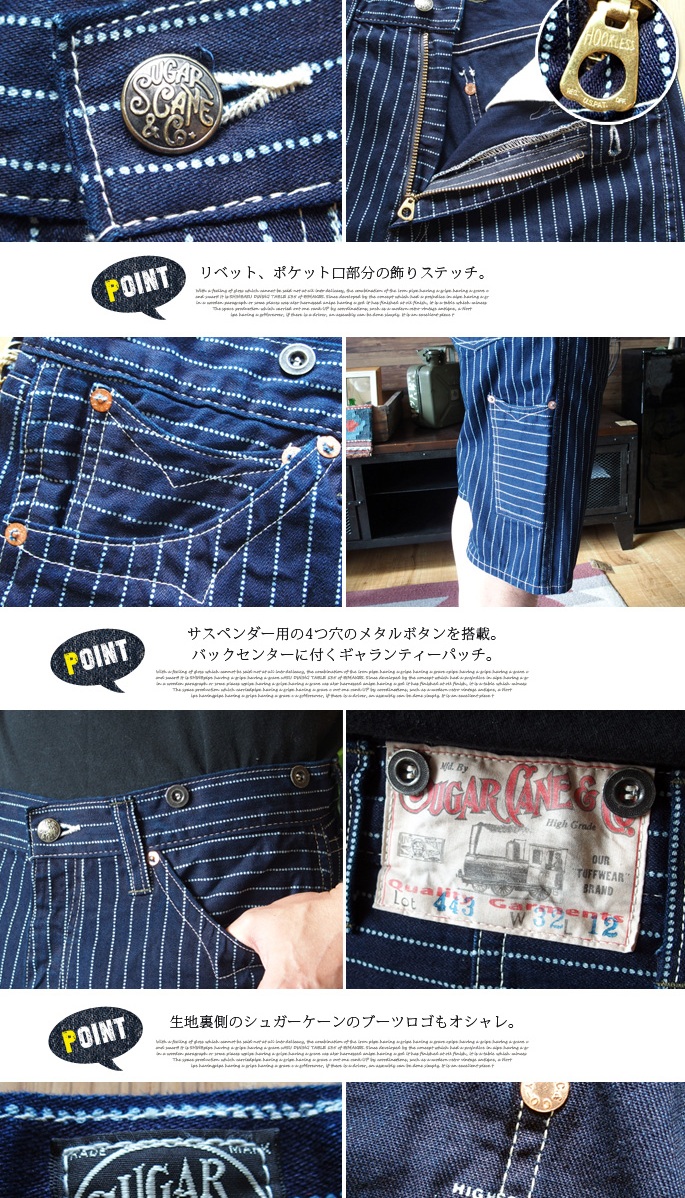 SUGARCANE(シュガーケーン)のWABASH STRIPE ZIP FLY SHORTSは、ウォバッシュストライプを使用したショートパンツです。インディゴ染めした後に抜染でドットストライプを表現した独特な雰囲気を持つ生地で、デニム同様に使い込むほどに色落ちやアタリなどの経年変化が楽しめるます。また、裏地には抜染でブランドネームが印字されるなど当時の生地を忠実に再現しております。1900年代初頭に見られるワークパンツに見られる、ポケット口の飾りステッチやサスペンダーボタンなど特徴あるディテールを取り入れたショートパンツです。ややゆったりとしたシルエットで幅広いスタイリングが可能です。