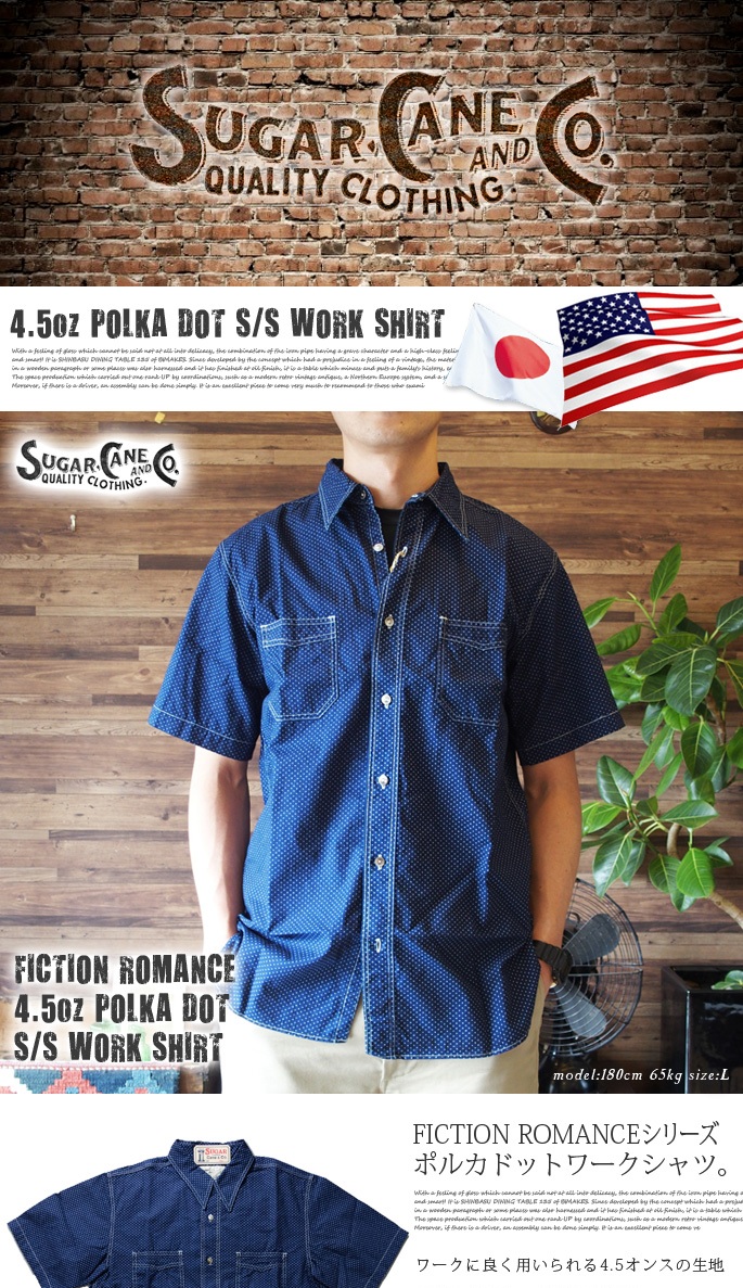 SUGAR CANE シャツ(シュガーケーン)「FICTION ROMANCE」(フィクションロマンス)4.5oz POLKA DOT S/S WORK SHIRT(4.5ozポルカドットワークシャツ)半袖シャツSC36670