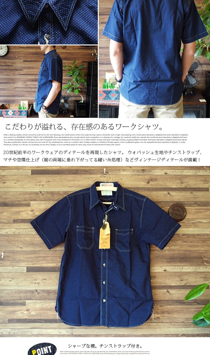 - SUGAR CANE 4.5ozポルカドットワークシャツ 4サイズ 送料無料