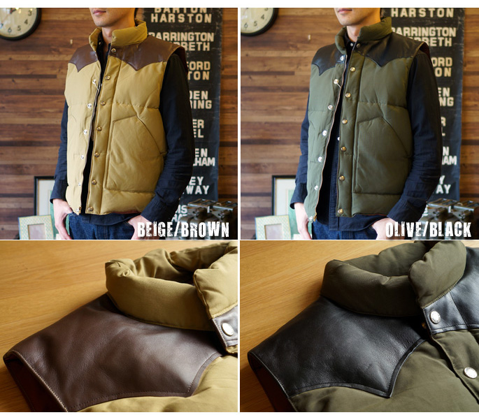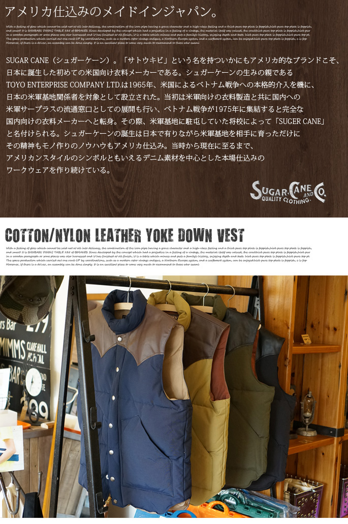 SUGAR CANE(シュガーケーン)OUTDOOR JACKET&VEST(アウトドアジャケット&ベスト) COTTON/NYLON LEATHER YOKE DOWN VEST(コットン/ナイロンレザーヨークダウンベスト)SC12340 BLACK(ブラック)4サイズ(S ・M・L・XL)