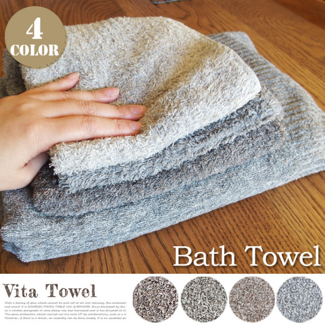 着心地の良いニットのような温かみ~ヴィータバスタオル(vita bath towel) 全4色(ブラウン・グレー・ベージュ・アイスグレー)コンテックス(kontex)日本製(Made in JAPAN)