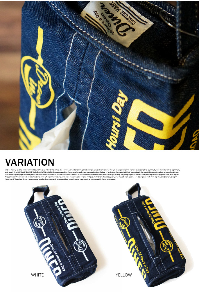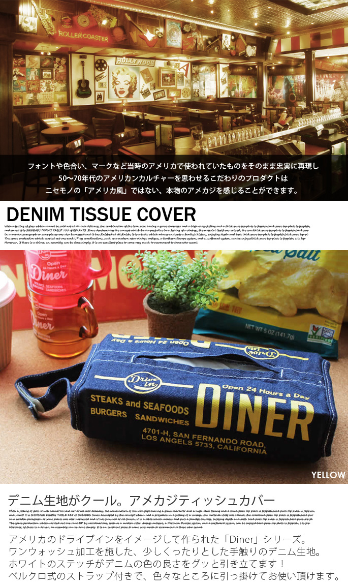 アメリカのドライブインをイメージして作られた「Diner」シリーズ☆DENIM TISSUE COVER(デニムティッシュカバー) 101221 全2カラー(WHITE/YELLOW)