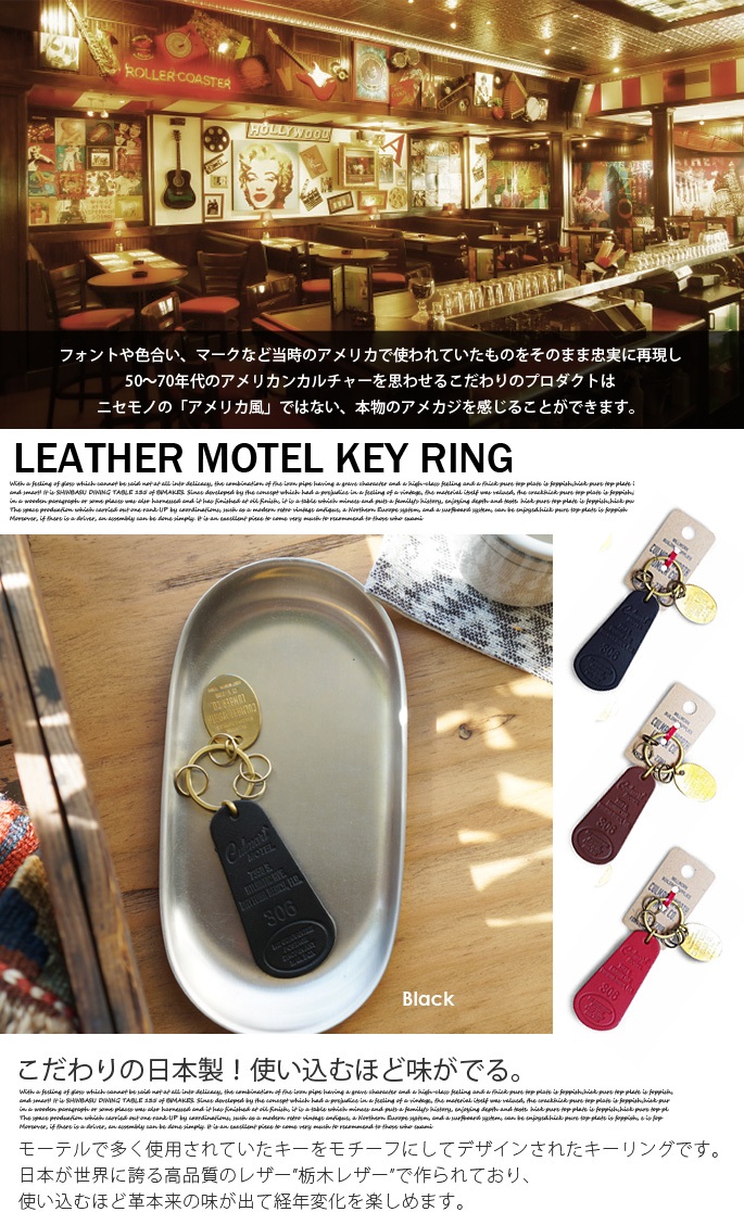 栃木レザーを使用したこだわりの日本製!LEATHER MOTEL KEY RING(レザーモーテルキーリング)101167 全3カラー(ブラック・ブラウン・レッド)