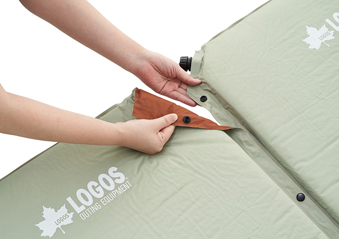 厚さ55mmと、従来モデルよりも厚みが増したセルフインフレートマットは、すぐれたクッション性で快適な寝心地。バルブを開ければ自動で空気が注入されるので準備も楽々。好みにあわせてグリーンとブラウンを使いわけできるリバーシブルデザインを採用しています。マット両サイドには、連結可能なボタン付き。シーンに合わせて拡張することができます。