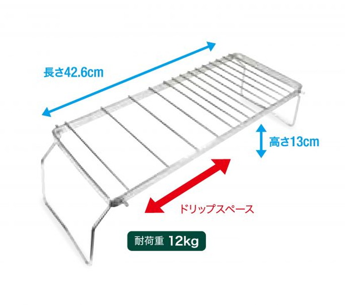 | | サイズ | 使用時:約W510×D165×H130? | | 材質 | 18-8ステンレス | | 納期 | 5日から10日程度 | | その他 | 耐荷重:12? | | 送料 | オーダーガイドをご覧ください